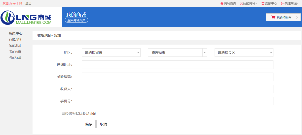 步骤二:点击【我的资料】-【我的地址】进入地址填写页面,然后点击【新增收货地址】即可输入您的收货地址。(如下图)